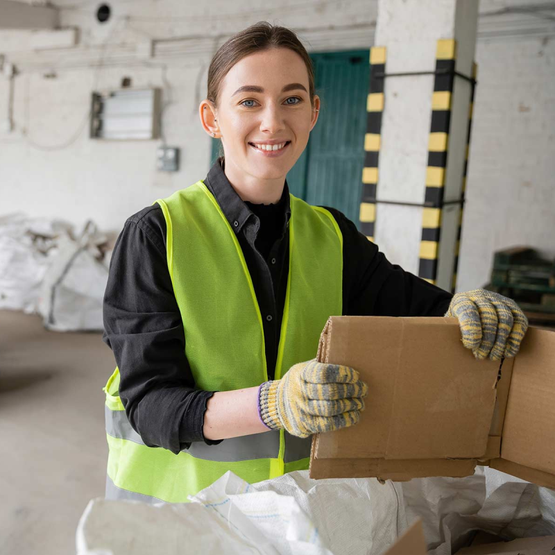 Cardboard is sorted and recycled responsibly to reduce landfill waste.